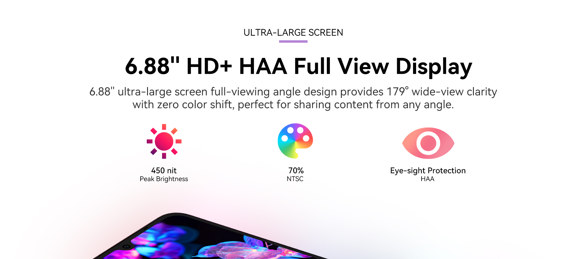 - 6.88-inch HD+ display 1640x720 resolution